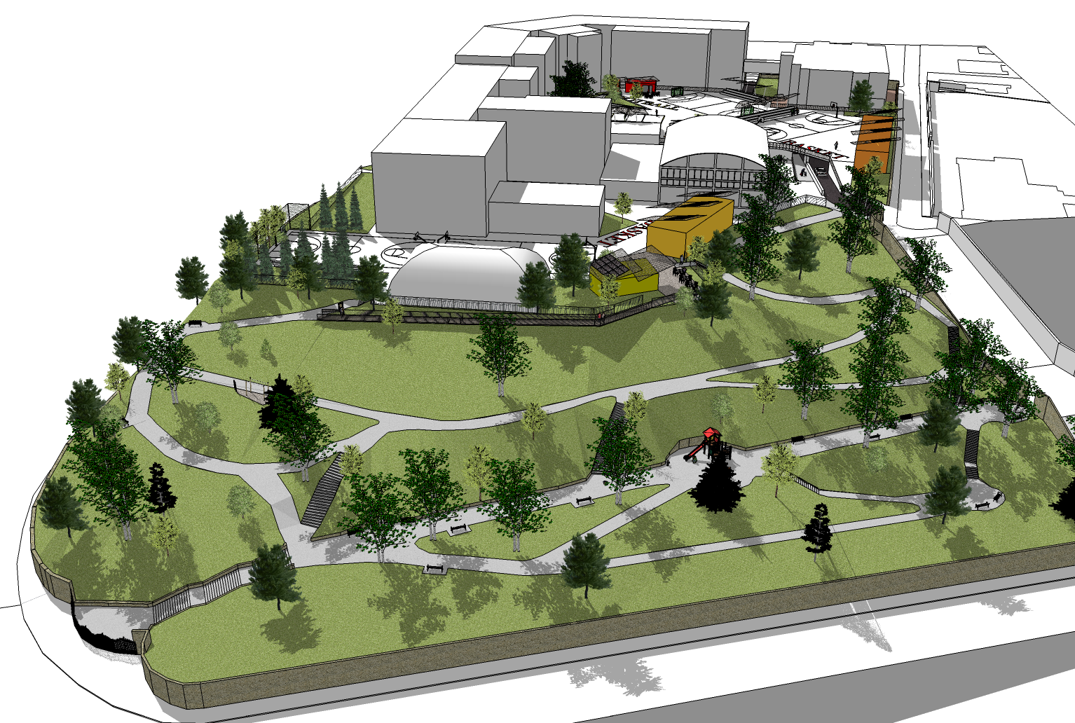 La tenso-struttura a fianco della storica palestra della scuola “G.Oberdan” potrà dotarsi di ulteriori due campi di pallacanestro all’aperto. Perno virtuale di questo patchwork impiantistico sportivo sarà il piccolo ma funzionale bar che servirà studenti, sportivi e semplici visitatori del giardino “Basevi”. Il giardino “Basevi” appunto, polmone verde collegamento fra due rioni popolosi come quello di San Giacomo e San Vito, ora lasciato all’incuria e al triste dimenticatoio cittadino; il Parco dello Sport mira a coinvolgere e rivitalizzarlo con micro-interventi puntuali d’arredo urbano e dotandolo di funzionali percorsi della salute con postazioni ad hoc per esercizi.