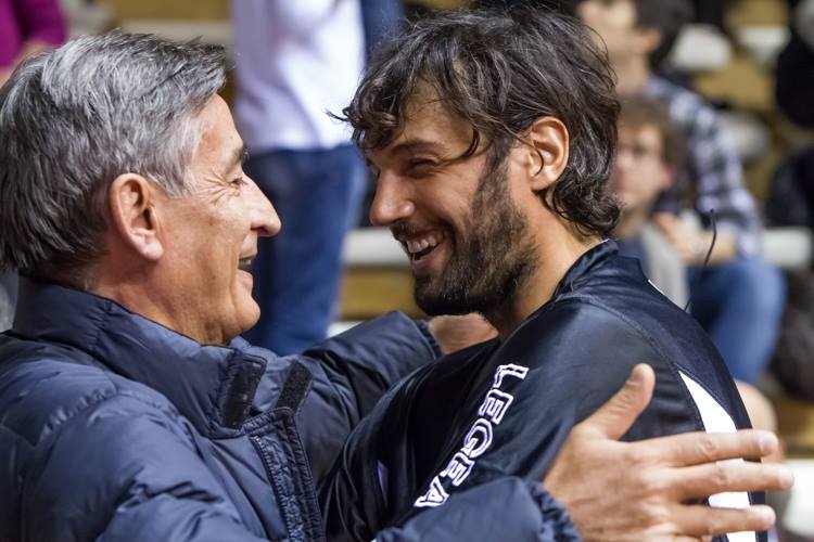 Ho gia’ fatto pubblica ammissione in tempi non sospetti: anelo a diventare un giornalista di propaganda, fortemente intriso di romanticismo. Ecco allora che la cruda realtà tendo a sfumarla di fronte a personaggi con una certa storia pregressa: si, Gianluca Basile e Matteo Soragna si son fatti vecchierelli, il loro basket diventa di posizione, d’esperienza….ma la gioia di vederli in canotta e pantaloncini sotto le volte del Palatrieste mi ripaga a prescindere; l’abbraccio del “Baso” con Tanjevic l’ulteriore emozione per cui ancora una volta ringrazio iddio di vedere questi personaggi in una città di pallacanestro, cosi come il cravattato Poz alle prese con quel perimetro opprimente entro cui consumare chilometri in veste da allenatore (in gabbia), cinico destino per una “mosca atomica”. Son convinto che l’applauso di tutto il palazzetto alla presentazione delle squadre verso queste icone, ha rispecchiato perfettamente questo mio pensiero…