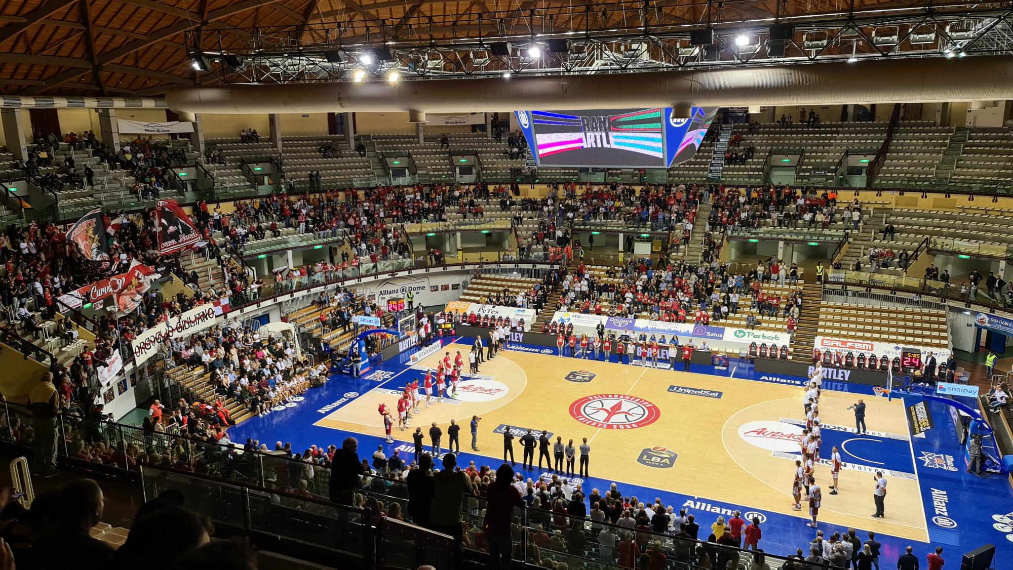 In barba all’emozione dell’esordio, le due contendenti dimostrano discreta confidenza con il canestro nelle prima battute: 4-7 con canestro di Kravic da sotto. Tanti “penetra e scarica” per fiaccare le difese, da una parte con canestri marchigiani, e per i padroni di casa con falli conquistati. Esegue molto bene la squadra di Repesa, con spaziature corrette e timing adeguato; Trieste però non si scompone impattando a quota 11 con Spencer. Sugli “aiuti” difensivi di Spencer, Kravic ha gioco facile sopra il ferro, prima spallata ospite sull’11-17 (parziale di 0-6) e time out coach Legovich. Gaines entra e spara dall’arco, ma la Carpegna Prosciutto è una macchina da canestro offensiva: 14-22 con Kravic dominante. Prima frazione chiusa con il massimo vantaggio pesarese sul 18 a 27. Trieste non difende e la banchettata marchigiana si esplicita in facili canestri in transizione; sui liberi di Totè c’è un nuovo importante allungo sul +13 ospite. Gaines prova da solista a trascinare i compagni, Bossi lo segue e c’è una minima reazione triestina con parziale di 5 a 0; immediato il time out di coach Repesa. C’è un Frank Gaines contro tutti sul parquet, con discreti dividendi per i biancorossi di casa, inerzia che si riequilibra leggermente: 30-35. Match divertente, agevolato da difese “allegre”, la Carpegna Prosciutto è brava a ricacciare indietro ogni tentativo di aggancio triestino; una schiacciata di Bartley rianima il Dome e Trieste è a -2. Buon impatto di Totè offensivamente, dalla parte opposta risponde Bartley, squadre all’intervallo sulla magia di Moretti e 44-47 sul tabellone.