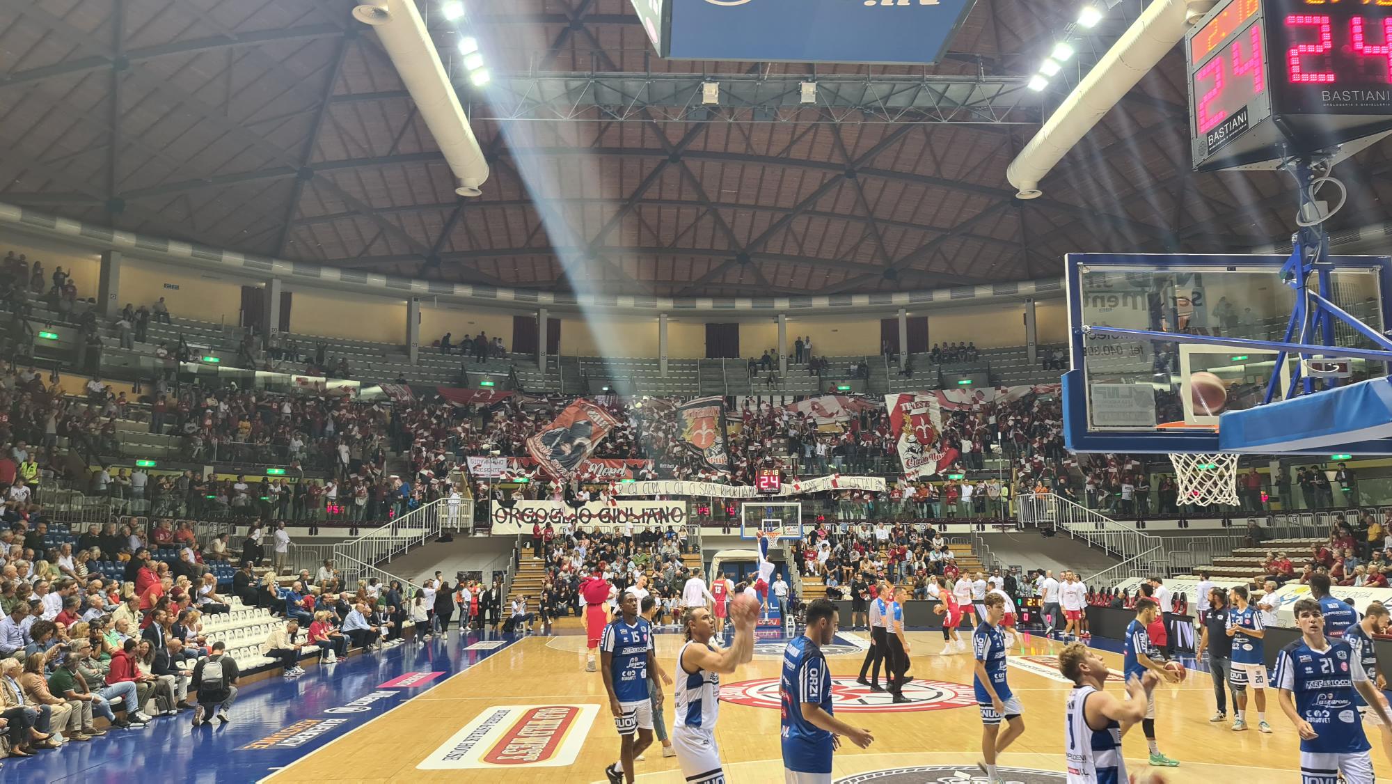 Prima di campionato, insolito mercoledì sotto le volte del Palatrieste nella sfida fra i biancorossi di casa e l’Agribertocchi Orzinuovi dell’indimenticato ex (ora dirigente) Alessandro Muzio. Squadra di coach Christian al completo, mentre per gli orceani manca lo straniero, avendo patito l’infortunio recente di Andre Wesson.