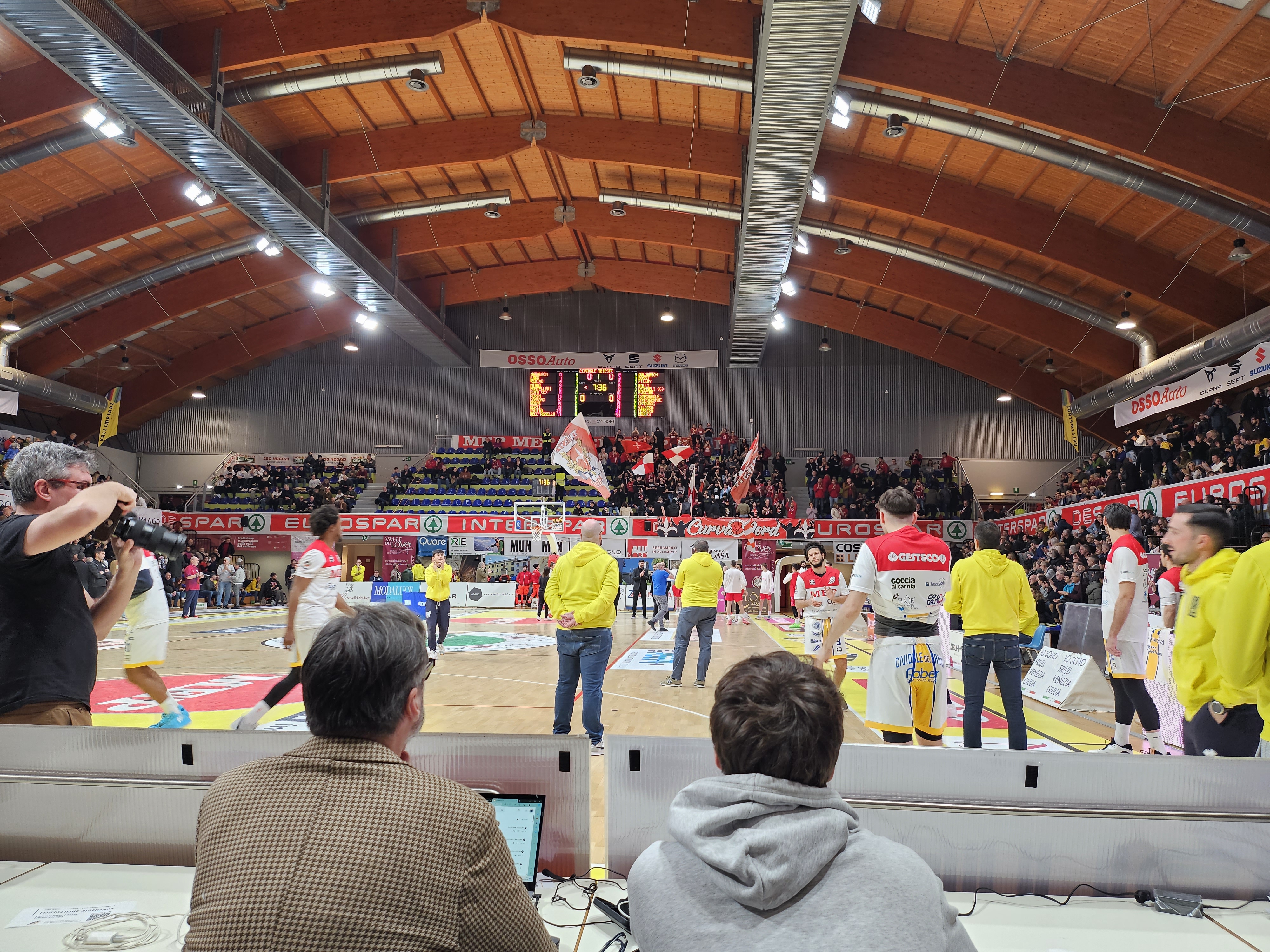 Jamion Christian lancia Ferrero in quintetto, alle prese con Miani (mezzo metro più alto), match dalle prime battute molto intenso, soprattutto sul fronte difensivo cividalese. Trieste avanti con una bella giocata Deangeli-Brooks, ma è un attimo prima della risposta di Dell’Agnello: 4-3. Tanti errori da ambo le parti, Lamb si iscrive a referto con una bel canestro da sotto ma i giuliani rispondono colpo su colpo; Mastellari con la tripla del contro-sorpasso, Cividale al primo mini-break sul 13 a 9. Allungo sul +7 dei padroni di casa con Lamb carico, scorrono i minuti del primo quarto con inerzia totalmente in mano agli Eagles; dieci minuti conclusi con la squadra di Pillastrini avanti 25-13 (massimo vantaggio). Filloy mette una pezza dall’arco ad un dominio dei padroni di casa, comodamente a canestro senza opposizione; banchettano i lunghi Eagles, s’infiamma il PalaGesteco per la migliore versione friulana, 31-16. Campogrande infila il primo canestro da tre punti con una logica, coach Pillastrini chiama un puntuale time-out prima che i suoi perdano di vista l’obiettivo. Il “pick and roll” di Cividale fa a fette la non difesa triestina, mentre Redivo segna da casa il +16 a metà frazione. Il vantaggio interno imbarazza il folto gruppo di appassionati proveniente dalla terra giuliana, Lamb e soci si divertono e divertono, squadre all’intervallo sul 46-24.